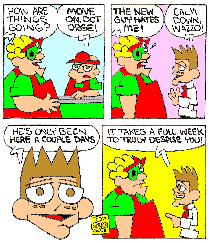 A fat cartoonist formulates sentences and paragraphs for fun and no profit